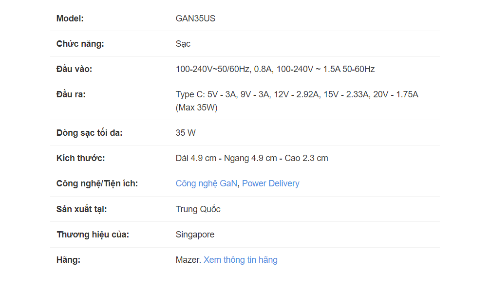 •Adapter Sạc 2 cổng Type C PD GaN 35W Mazer GAN35US tích hợp công nghệ GaN mang đến hiệu suất sạc cao nhưng vẫn tối ưu kích thước, ổn định và làm mát hơn trong quá trình sạc, an toàn cho quá trình sử dụng.
