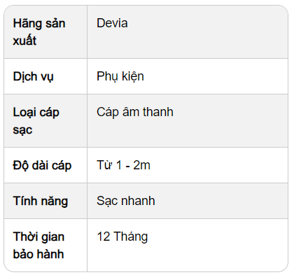 Cáp âm thanh Devia Ipure 3.5MM là một phụ kiện dây sạc quan trọng trong các hoạt động trải nghiệm giải trí với độ bền cao và độ dài vượt trội sẽ là một trong những phụ kiện cần thiết cho hầu hết người dùng.