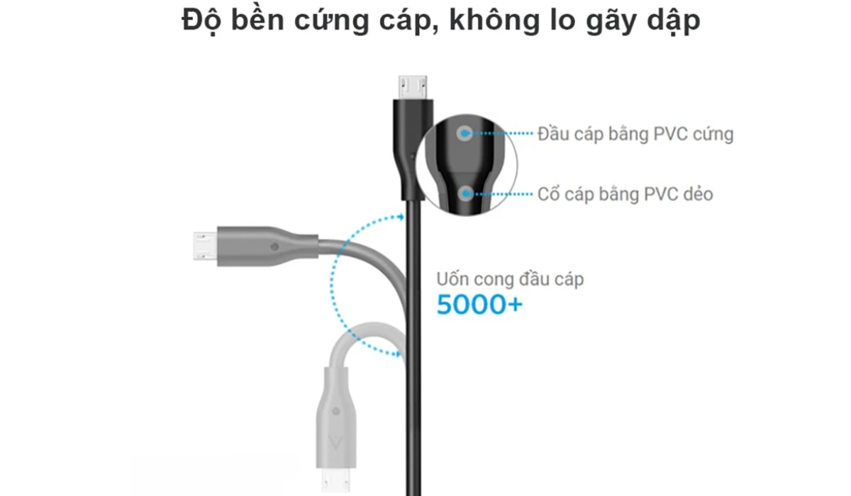 Việc trang bị đầu cáp Micro USB thông dụng của cáp sạc Micro-USB 0.9m sẽ giúp cho việc kết nối được với nhiều thiết bị hiện nay như điện thoại, máy tính bảng, tai nghe Bluetooth,…