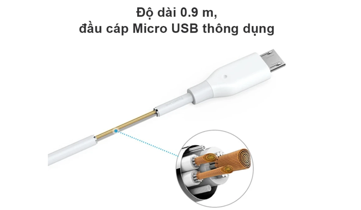 Độ dài 0.9 m, đầu cáp Micro USB thông dụng