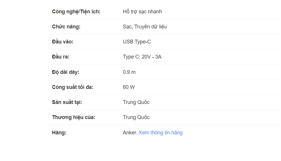 • Công suất sạc nhanh 60 W giúp nhanh chóng nạp năng lượng cho các thiết bị của bạn mà không mất quá nhiều thời gian.