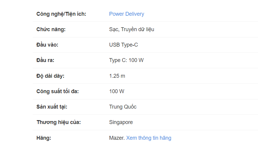• Cáp Type C Mazer C2C125 trang bị công nghệ Power Delivery giúp dòng sạc ổn định, bảo vệ pin cho thiết bị nhận sạc cũng như đảm bảo an toàn trong quá trình sạc pin.