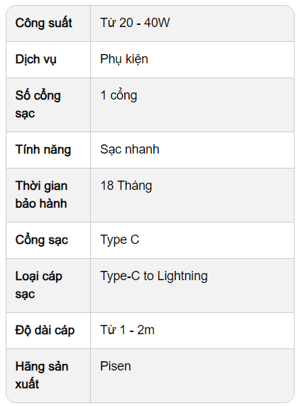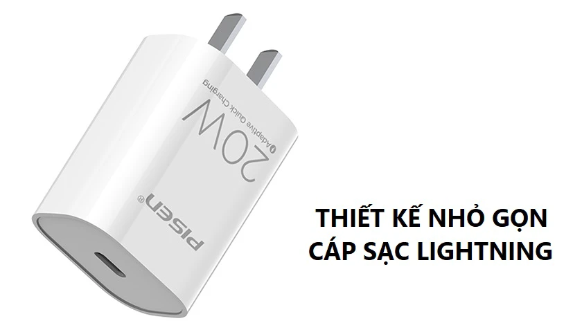 Combo sạc Pisen Quick Pd 20w kèm cáp lightning – Phụ kiện sạc nhanh tiện lợi