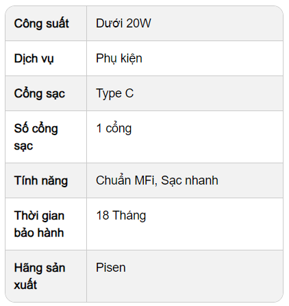 Mua ngay sạc Pisen Type-C PD 18W chính hãng, chất lượng đảm bảo tại Tân Lập Mobile