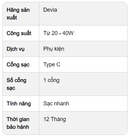Với công suất sạc 25W, củ sạc nhanh Devia 25W Type-C chính hãng phù hợp với những ai có nhu cầu dùng thường xuyên điện thoại, máy tính bảng và cần thiết nạp thêm năng lượng. Cạnh đó, thiết kế của củ sạc còn có khả năng tương thích với các loại dây sạc, Devia USB-C 25W có thể tích hợp cùng sạc cổng Lightning và sạc cho sạc iPhone / iPad. Hoặc kết nối với dây sạc cổng USB để sạc nhanh cho điện thoại hoặc tablet Android.