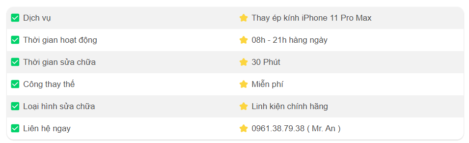 Ép kính cho iPhone 11 Pro Max ở đâu uy tín? Tìm một địa chỉ Ép kính cho iPhone 11 Pro Max uy tín thật sự không hề đơn giản. Điều này sẽ ảnh hưởng trực tiếp đến trải nghiệm sử dụng điện thoại của bạn trong công việc và giải trí. Vậy Ép kính cho iPhone 11 Pro Max ở đâu chất lượng? Ép kính cho iPhone 11 Pro Max giá bao nhiêu? Hãy tham khảo bài viết dưới đây để biết địa chỉ thay ép kính chính hãng nhé!