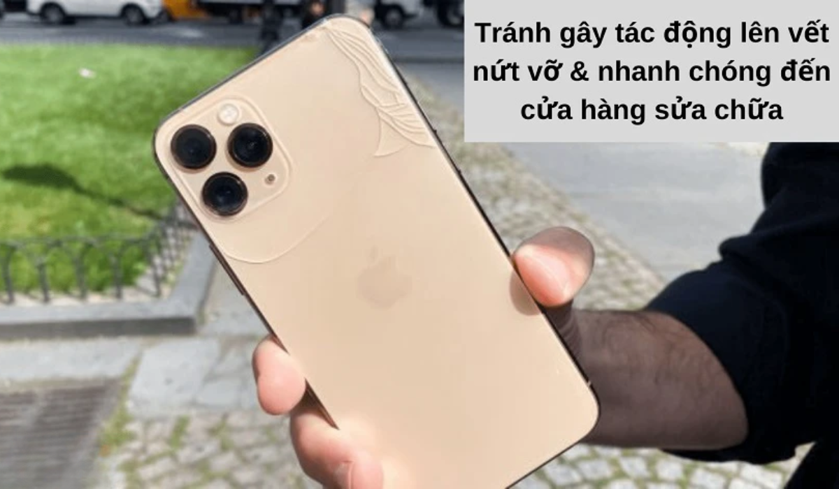 Trước tiên, khi phát hiện vết nứt, bạn hãy ngưng tiếp xúc trực tiếp và gần vị trí nứt. Nếu có nứt vỡ ở mặt lưng, bạn cần lắp thêm ốp lưng và sử dụng tạm thời. Nếu vết nứt xuất hiện ở màn hình, bạn cần hạn chế để tay chạm vào vùng nứt. Lý do là vì càng có tác động, vết nứt sẽ dễ lan ra.