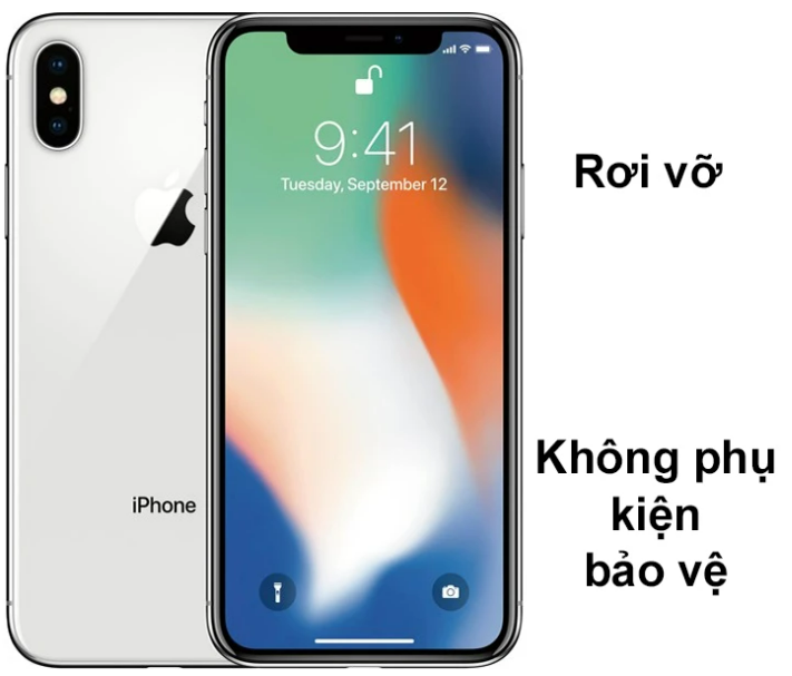 - Rơi rớt: Đây là nguyên nhân chuẩn yếu gây ra tình trạng nứt vỡ màn hình, bạn vô tình làm rơi chiếc điện thoại xuống mắt sàn cứng vì vậy gây ra nứt vỡ mặt kính iPhone X.
