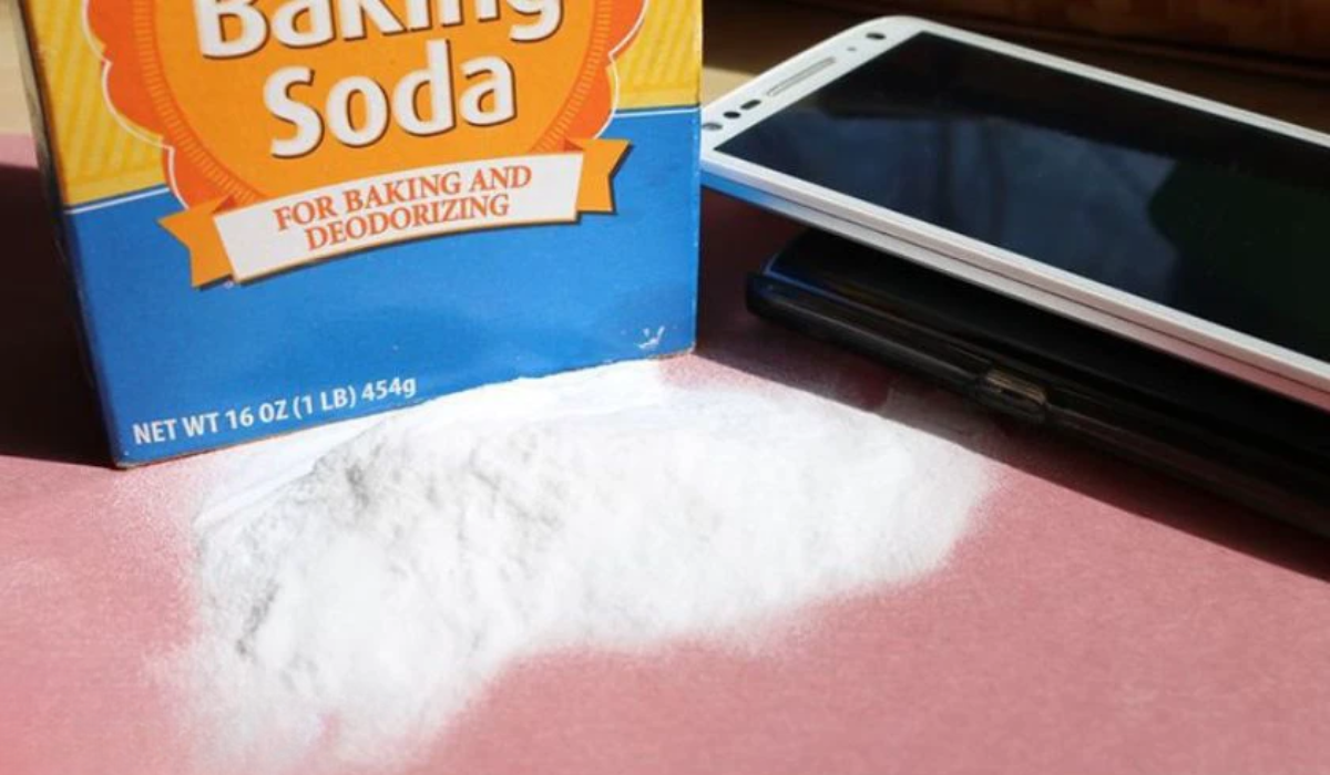 - Baking soda: Dùng baking soda cũng được biết đến như một chất tẩy khá hữu hiệu để làm sạch. Đầu tiên, người dùng hãy trộn soda với nước lạnh với tỉ lệ 2 : 1 và khuấy đều tay. Tiếp theo sẽ dùng một miếng vải mềm thấm vào dung dịch rồi thoa đều lên những vết xước. Cuối cùng hãy dùng một chiếc khăn mềm lau khô lại điện thoại.