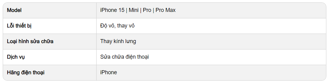Để tham khảo giá dịch vụ Thay mặt kính lưng iPhone 15 Pro, quý khách vui lòng liên hệ ngay 0961.38.79.38 để nhận được thông tin mới nhất.