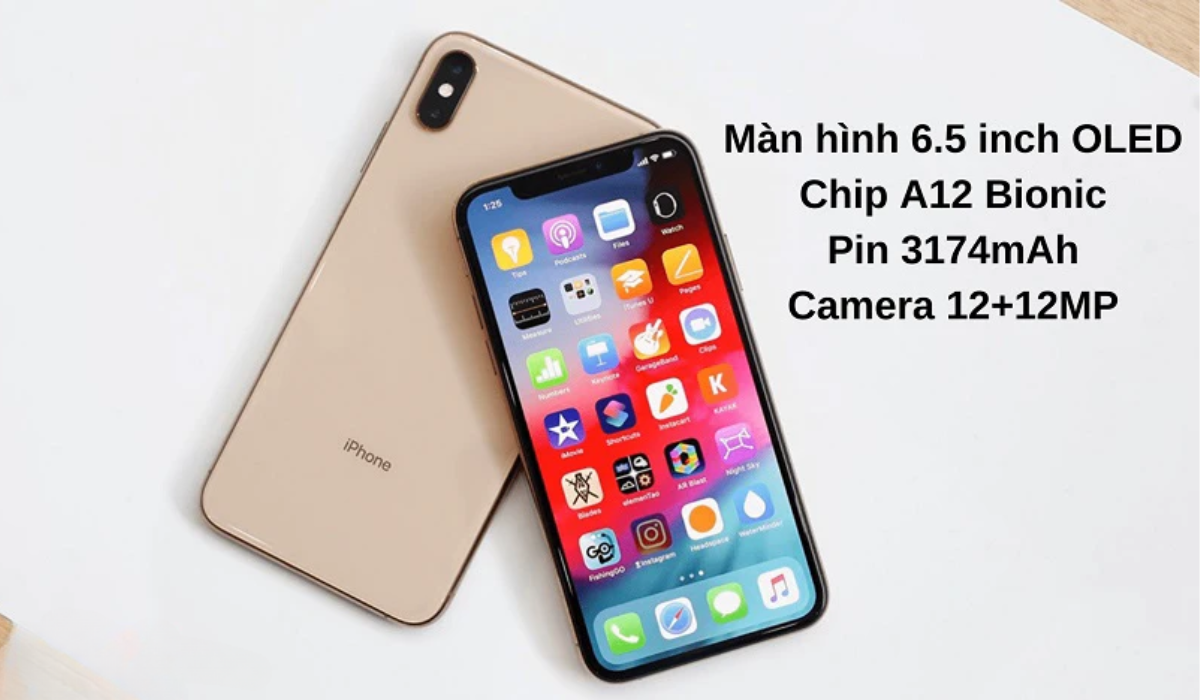 iPhone Xs Max cũng sở hữu hiệu năng ấn tượng với chip A12 Bionic 6 lõi được sản xuất bởi Apple, cùng với 4GB RAM và tùy chọn đến 512GB ROM. iPhone Xs Max mang cụm camera kép 12+12MP với nhiều tính năng cải tiến, cùng viên pin 3174mAh cho thời lượng dùng lâu dài.
