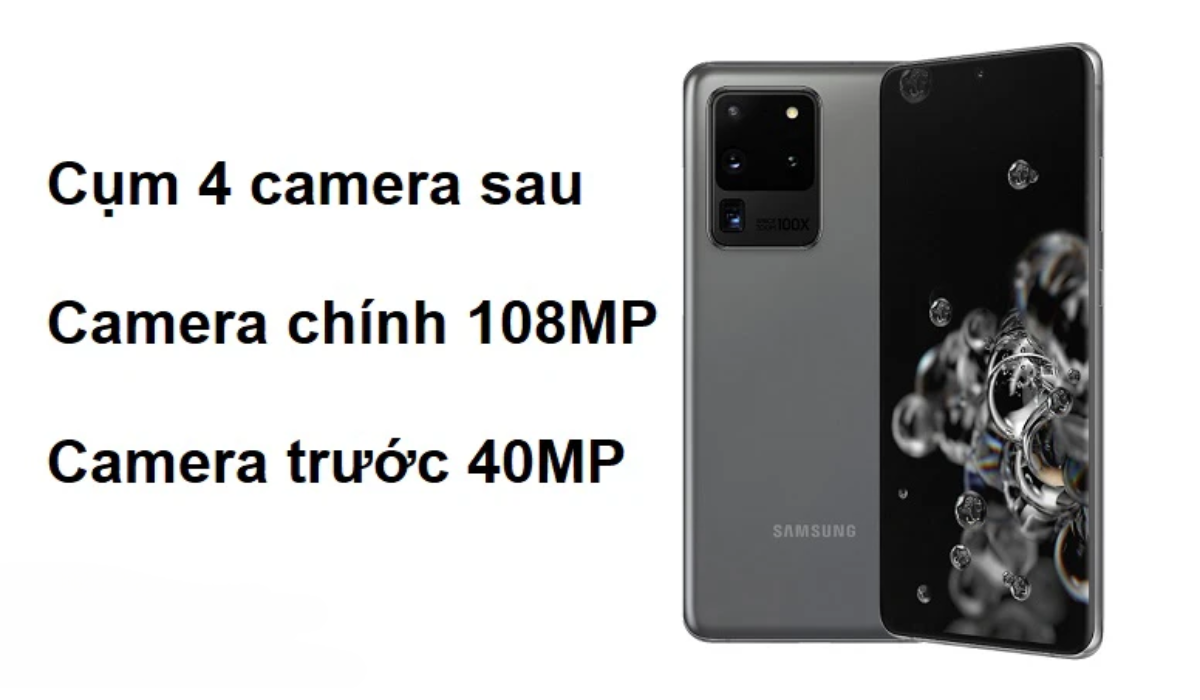 Samsung S20 Ultra là chiếc smartphone sở hữu camera siêu đỉnh với cụm 4 camera sau với camera chính có độ phân giải cực khủng lên đến 108 MP các camera khác có độ phân giải là 48MP, 12MP, TOF 3D.
