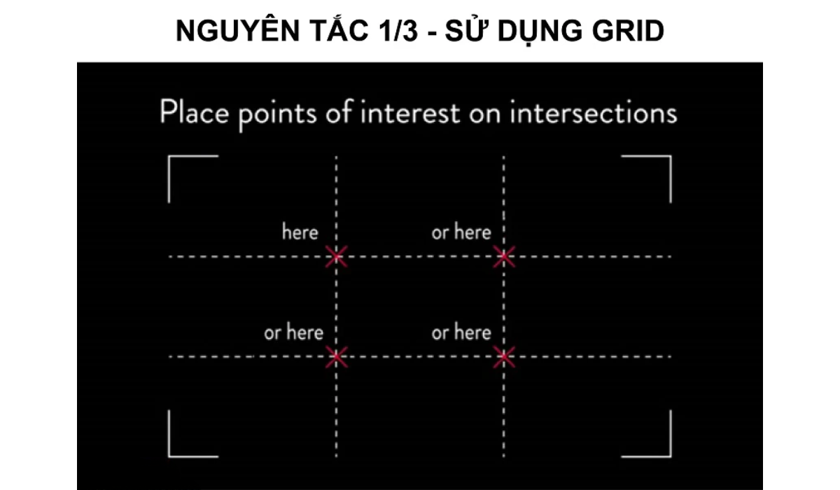 - Nguyên tắc 1/3: Bạn cần bật chế độ Grid 3×3 trên chiếc camera Samsung Galaxy S20 Plus. Nguyên tắc này giúp cho bạn chia khung ảnh làm 3 phần và canh chỉnh cho vật thể bạn muốn chụp nằm ở chỗ giao nhau khung Grid 3×3 là đẹp nhất.