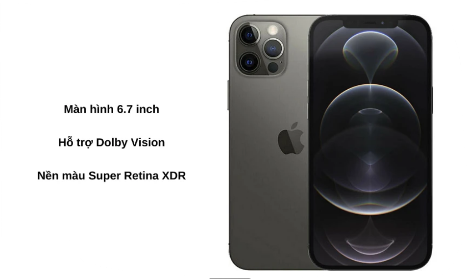 iPhone 12 Pro Max là phiên bản cấu hình tốt nhất trong số 4 mẫu iPhone 12 series ra mắt vào năm 2020. Nổi bật nhất nhì trong số cấu hình iPhone 12 Pro Max phải kể đến màn hình 6.7 inch Super Retina XDR của máy. Tính năng HDR10 cùng Dolby Vision sẽ giúp hình ảnh hiển thị trên iPhone 12 Pro Max có độ tương phản cao, dải màu rộng, và tăng thêm độ chân thực tổng thể. Theo đánh giá từ các reviewer cũng như người dùng phổ thông, màn hình hiển thị chính là điểm nhấn trên tổng thể iPhone 12 Pro Max.