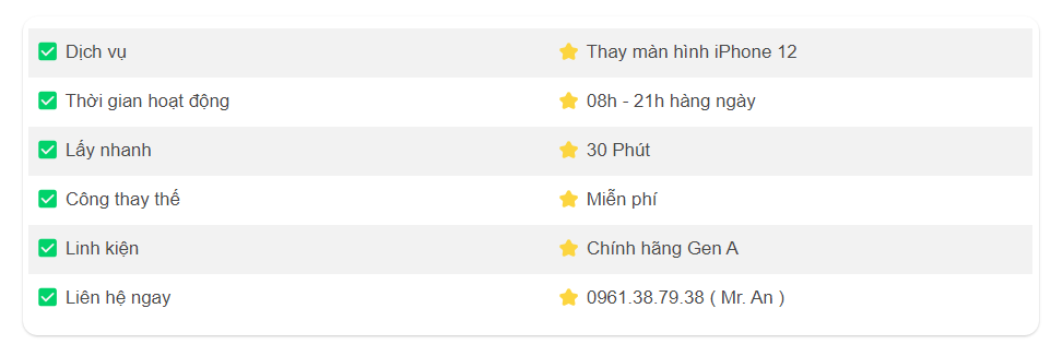 Thay màn hình chính hãng cho iPhone 12 giá rẻ, chính hãng, uy tín tại Bình Dương