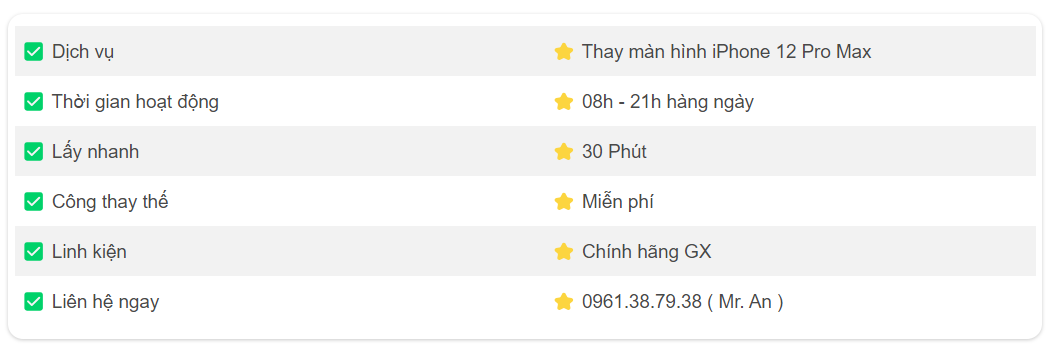 Thay màn hình GX chính hãng cho iPhone 12 Pro Max chất lượng cao, bảo hành đến 12 tháng tại Tân Lập Mobile