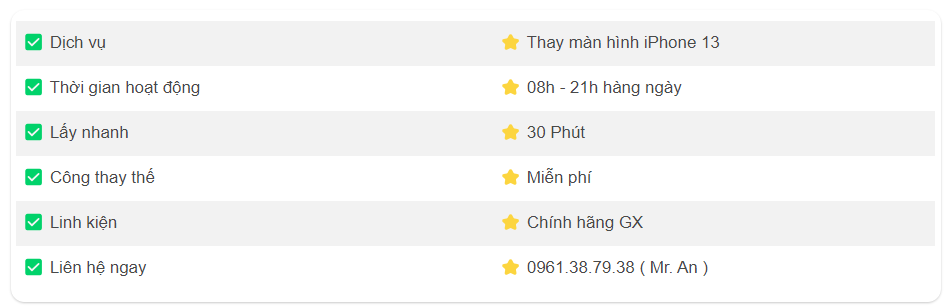 Thay màn hình GX chính hãng cho iPhone 13 giá rẻ, chính hãng, uy tín tại Bình Dương