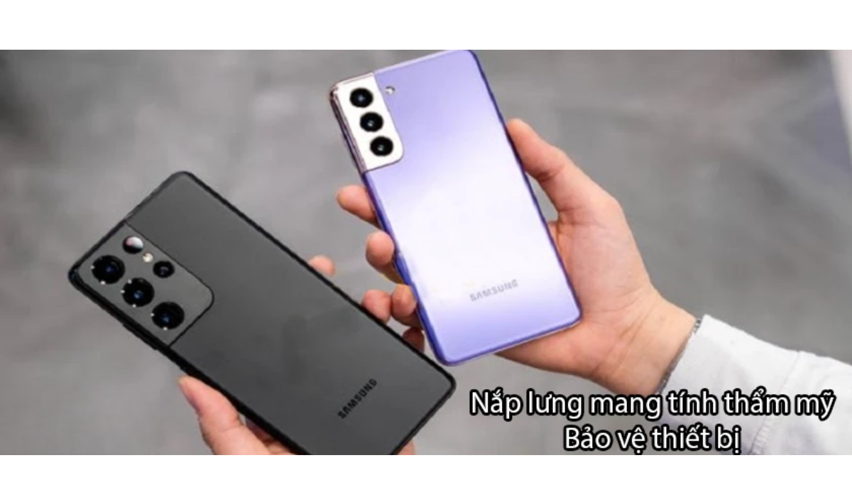 Nắp lưng Samsung Galaxy S21 không chỉ có tác dụng làm gia tăng vẻ đẹp của máy mà chúng còn có vai trò quan trọng trong việc bảo vệ những bộ phận linh kiện bên trong thiết bị như pin, camera,…