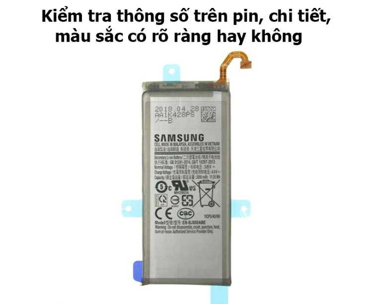 Trên thị trường hiện nay đang có rất nhiều linh kiện pin khác nhau khi tìm đến dịch vụ thay pin SS A6 2018. Có thể xếp chung quy lại bao gồm pin zin và pin lô. Tuy bạn đã chọn được những đơn vị sửa chữa điện thoại uy tín, song bạn cũng nên kiểm tra chắc chắn xem viên pin mà bạn thay thế có phải là hàng zin hay không? Cách 1: Kiểm tra những chi tiết bên ngoài pin như chữ, thông số có bị mờ, nhòe hay không. Pin Samsung có được sản xuất tại nhiều nước nhưng có đặc điểm quan trọng nhất là pin Samsung Galaxy A6 2018 sẽ không bao giờ được in ngày sản xuất.