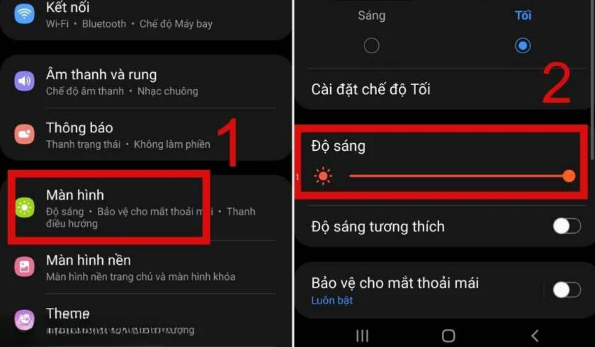 Bước 1: Bạn truy cập Cài đặt. Chọn Màn Hình và tiến hành kéo độ sáng lên mức cao nhất.