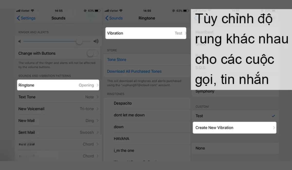Đối với iPhone XS cũng như các dòng iPhone khác, bạn có thể tạo độ rung tùy chỉnh với các mức độ rung khác nhau để có thể gán nó cho những đối tượng như người thân, bạn bè, công việc,…giúp bạn dễ dàng nhận ra ai đang gọi điện hoặc nhắn tin cho bạn mà không cần lấy điện thoại ra xem. Bạn cũng có thể gán chế độ rung cho từng người khác nhau hoặc cho một nhóm người, chỉ cần làm theo hướng dẫn sau: