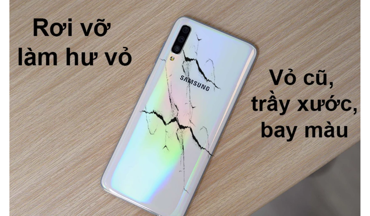 - Sử dụng Galaxy A70 không cẩn thận làm va đập hoặc làm rơi khiến vỏ của máy bị móp méo, vênh.