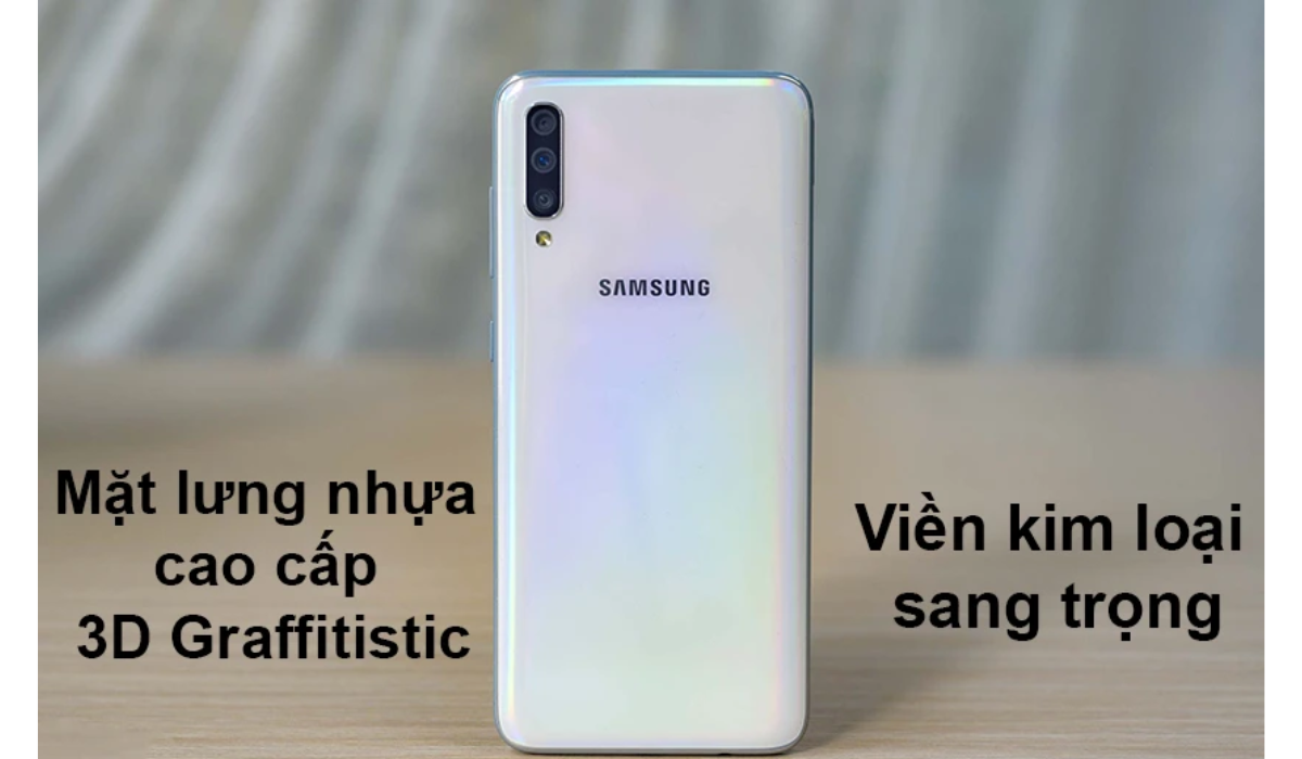 Máy được trang bị vỏ viền kim loại sáng bóng giúp chiếc điện thoại luôn sáng bóng, sang trọng. Ngoài ra, máy cũng được trang bị mặt lưng nhựa cao cấp 3D Graffitistic chống bám vân tay, mồ hôi. Cả viền và mặt lưng kết hợp lại tạo ra một bộ vỏ ngoài cho Samsung Galaxy A70 đầy sang trọng và tinh tế.